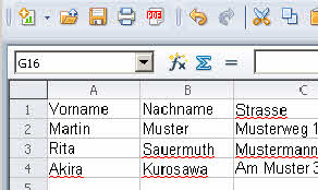 einer Tabellenkalkulation (unteres Bild).